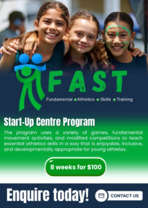 FAST (Fundamental Athletics Skills Training) is an 8-week introductory athletics program designed to help children develop the core skills of running, jumping and throwing through fun, engaging activities.